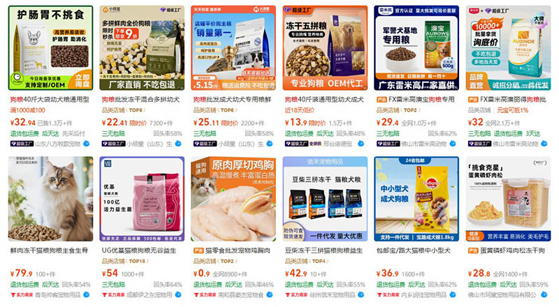 Nguồn nhập thức ăn chó mèo trên Taobao, Tmall