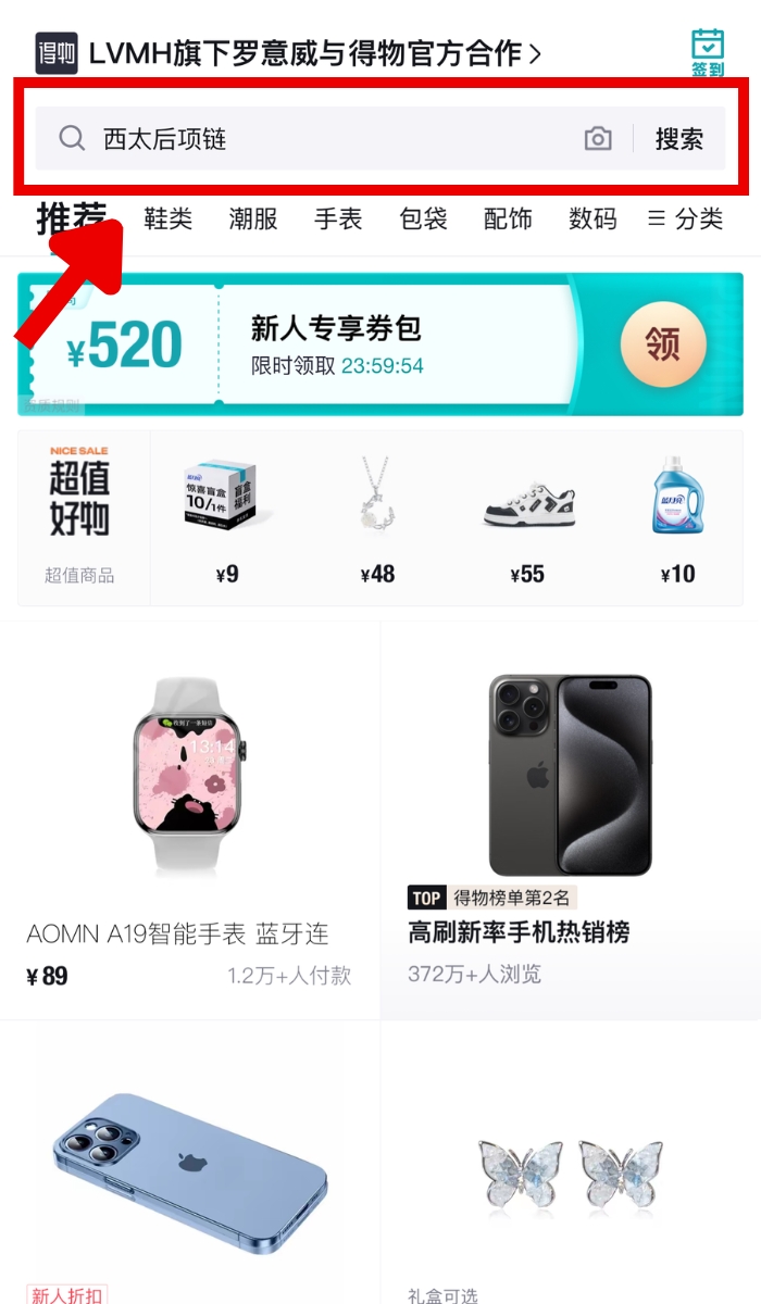 Cách mua hàng trên ứng dụng Dewu là bạn hãy nhập tên sản phẩm cần mua vào thanh tìm kiếm. Lúc này ứng dụng sẽ xuất hiện vô vàn lựa chọn về sản phẩm bạn đang tìm kiếm. Nếu bạn không rành tiếng Trung, bạn nên sử dụng Google Dịch hoặc app dịch tiếng Trung để chuyển đổi ngôn ngữ cho thuận tiện.