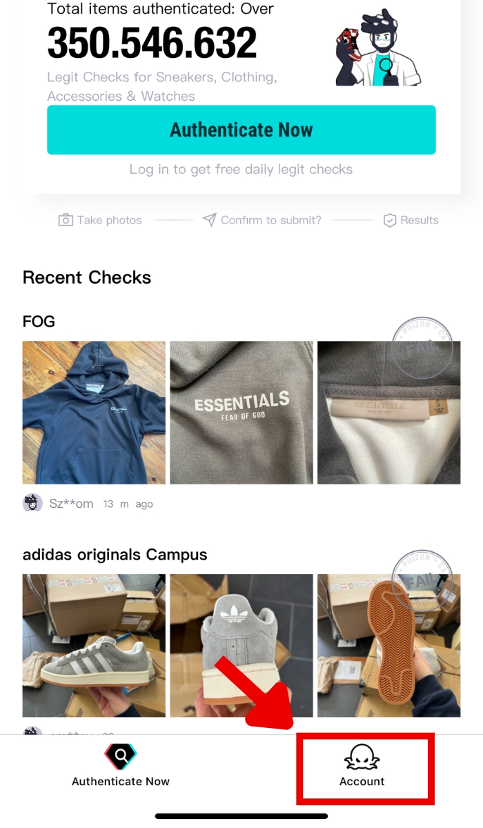 Sau khi đã hoàn tất cài đặt ứng dụng POIZON, bạn hãy truy cập App và bấm chọn Account để tiến hành đăng ký tài khoản.