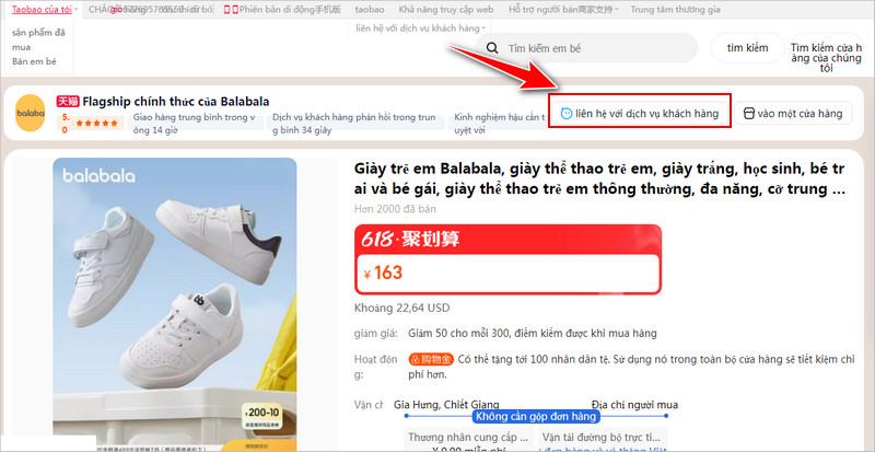 Để tạo điều kiện cho người mua và bán thuận tiện trong việc thực hiện giao dịch trên các sàn TMĐT, Alibaba phát triển ứng dụng Aliwangwang. Bạn chỉ cần tải, cài đặt và đăng nhập bằng tài khoản Taobao, Tmall của bạn. Sau khi đã tải được phần mềm Aliwangwang, bạn vào phần chi tiết sản phẩm, bấm vào hình giọt nước như hình dưới để tiến hành thương lượng với nhà cung cấp. Lưu ý là bạn cần thạo tiếng Trung hoặc sử dụng Google dịch thành thạo để có thể trao đổi với nhà cung cấp thuận lợi.