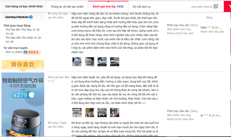 8. Đánh giá shop trước khi mua hàng: Nhà cung cấp trên Tmall đều là shop chính hãng chuyên bán các sản phẩm chất lượng. Tuy nhiên, không phải shop nào cũng thực sự uy tín để bạn lựa chọn order. Vì vậy, bạn nên đánh giá và tìm hiểu kỹ thông tin của shop trước khi đặt hàng. Một số thông tin bạn cần chú ý bao gồm: Số sao (5 sao cao nhất), điểm đánh giá trên thang 5, Tên/vị trí của shop, phản hồi của người mua,...
