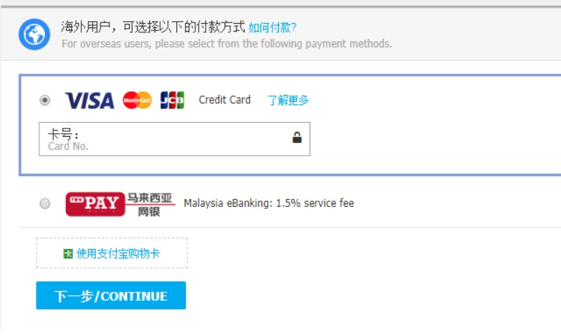 Thanh toán hàng hóa qua Alipay hoặc thẻ thanh toán quốc tế